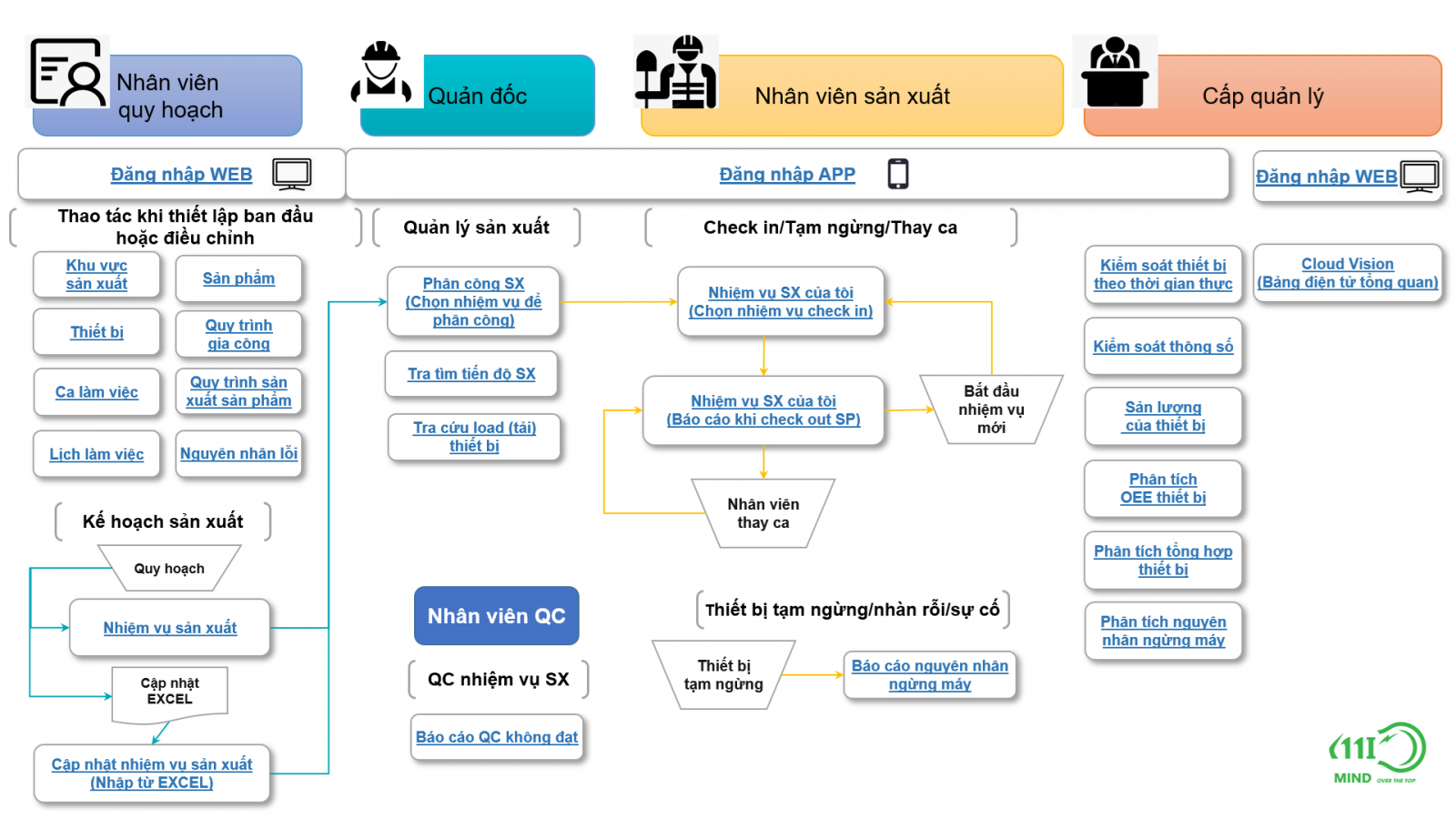 - Module điều hành sản xuất : Triển khai quản lý sản xuất thông minh
